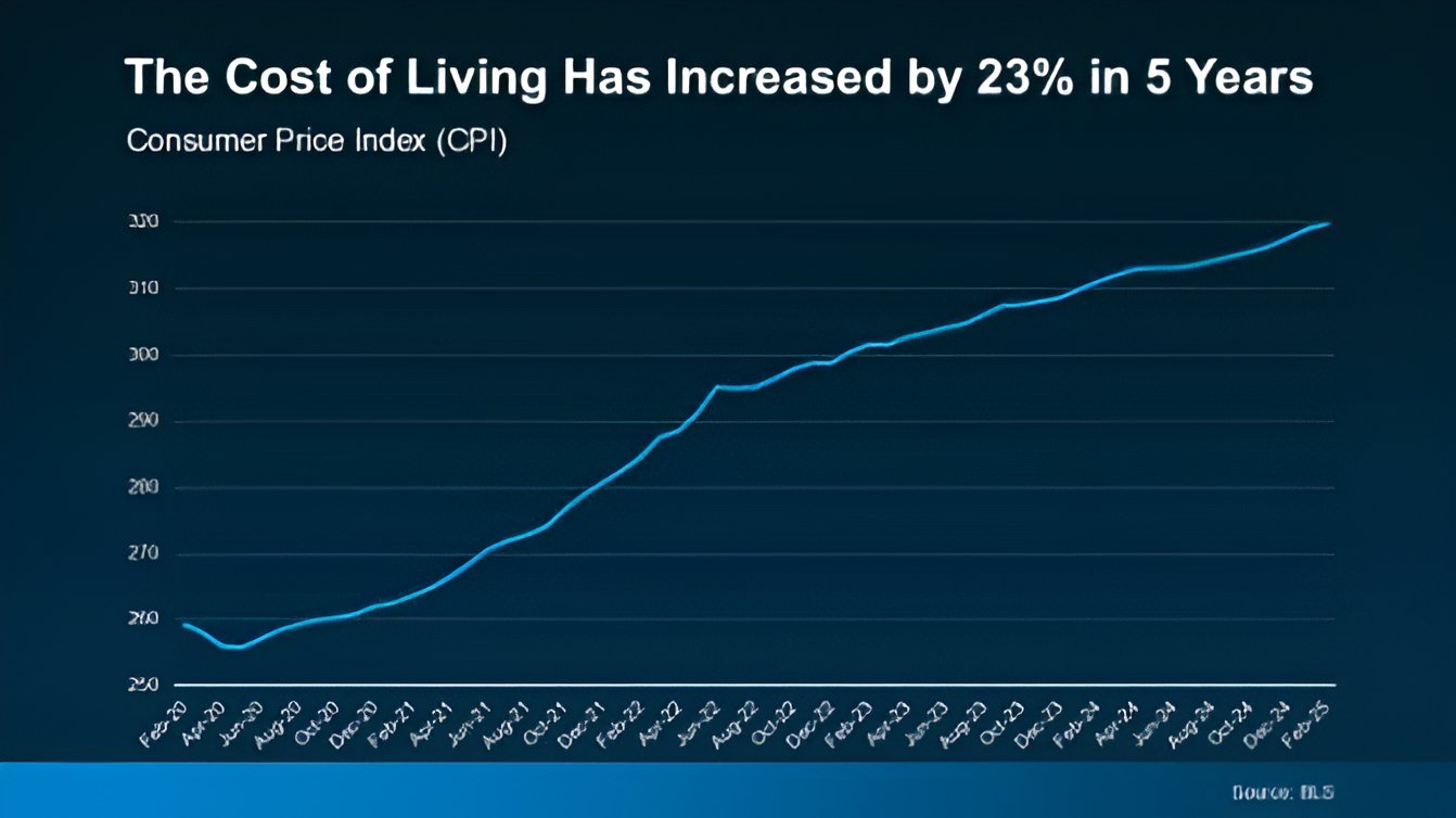 That's an especially important question right now. Just in the past five years, the cost of living has jumped by 23% according to the Bureau of Labor Statistics (BLS). That's based on the Consumer Price Index (CPI), which is how changes are tracked in the average price consumers pay for goods and services (see graph below):
