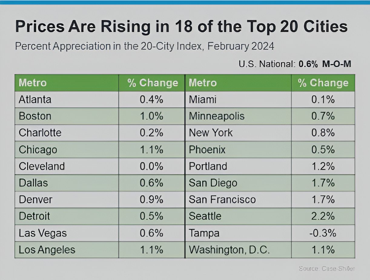 After Seeing a Jump in Home Prices Nationally in February, You Might Be Wondering if They're Going up In Your Area, Too. While It Depends on Where You Live, Prices Are Rising in 18 of The Top 20 Cities Case-Shiller report on the monthly price index (see chart below):