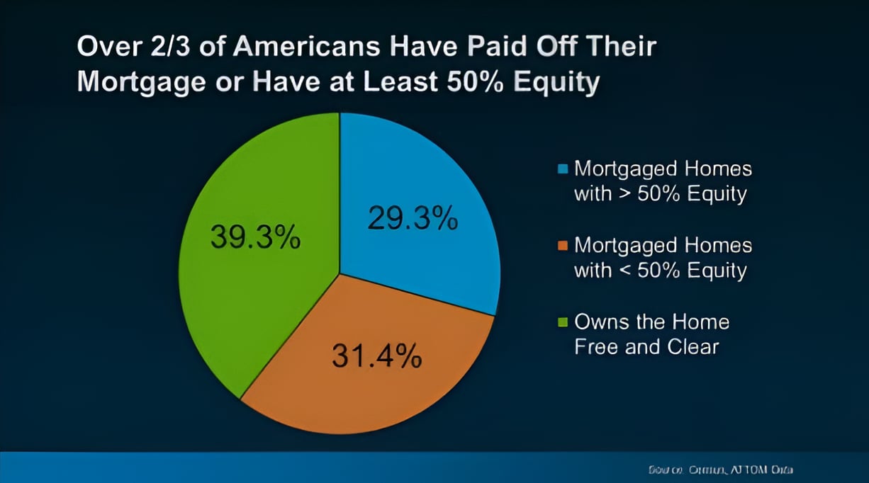 Recent data from the Census and ATTOM shows how significant today's home equity really is. In fact. More than two out of three homeowners have either completely paid off their mortgages (shown in green in the chart below) or have at least 50% equity in their homes (shown in blue in the chart below):