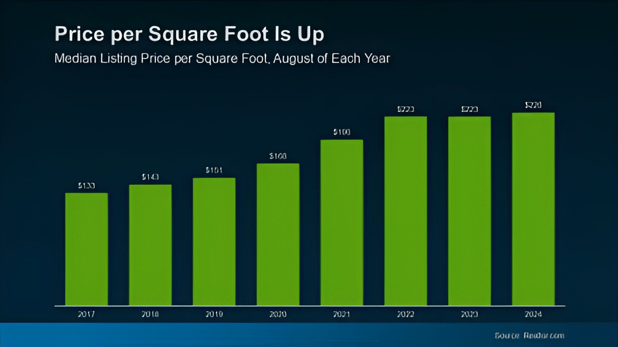The median asking price doesn't take into account the size of different homes, so it may not always reflect the true value. And the latest national price per square foot data shows home values are still increasing, even though the median asking price has dropped (see graph below).